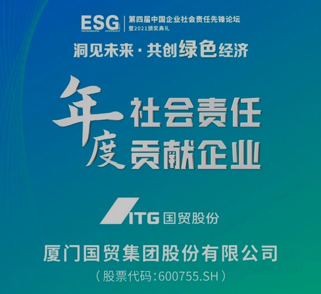 11月30日,由人民日?qǐng)?bào)社旗下《國(guó)際金融報(bào)》主辦的“洞見(jiàn)未來(lái) 共創(chuàng)綠色經(jīng)濟(jì)”2021·第四屆中國(guó)企業(yè)社會(huì)責(zé)任先鋒論壇在上海成功舉辦。廈門(mén)國(guó)貿(mào)(股票代碼:600755.SH)憑借在社會(huì)責(zé)任承擔(dān)方面的突出成果和ESG治理方面的卓越表現(xiàn),榮獲“年度社會(huì)責(zé)任貢獻(xiàn)企業(yè)”獎(jiǎng)項(xiàng)。
