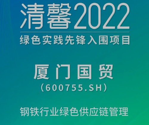 6月5日,由《每日經(jīng)濟(jì)新聞》主辦的“清馨2022綠色實(shí)踐先鋒項(xiàng)目”正式發(fā)布。廈門(mén)國(guó)貿(mào)(SH.600755)的“鋼鐵行業(yè)綠色供應(yīng)鏈管理”項(xiàng)目成功獲評(píng)“清馨2022綠色實(shí)踐先鋒入圍項(xiàng)目”。