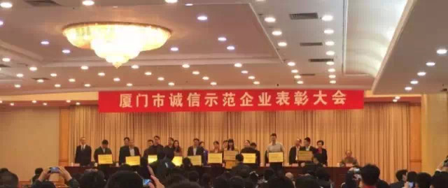 由廈門市誠(chéng)信促進(jìn)會(huì)及相關(guān)職能部門聯(lián)合開(kāi)展的“2012—2013年度廈門市誠(chéng)信示范企業(yè)”評(píng)選結(jié)果日前出爐,今天,廈門國(guó)貿(mào)與其它摘得金牌的316家標(biāo)桿企業(yè)一起接受了表彰。