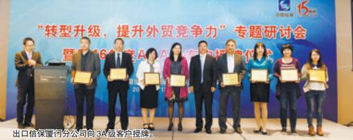 在中國信保近日舉辦的“轉型升級,提升外貿(mào)競爭力”專題研討會暨AAA級客戶授牌儀式上,廈門國貿(mào)被中國信保授予AAA級客戶。據(jù)悉,中國信保將對獲授AAA級客戶的企業(yè)從承保、理賠、增值服務等方面制定差異化政策,大力支持這些重點客戶使用個性化承保方案開拓海外市場。