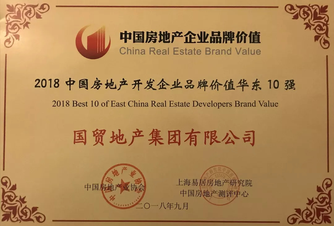喜報丨國貿(mào)地產(chǎn)榮獲2018中國房地產(chǎn)品牌價值測評華東10強