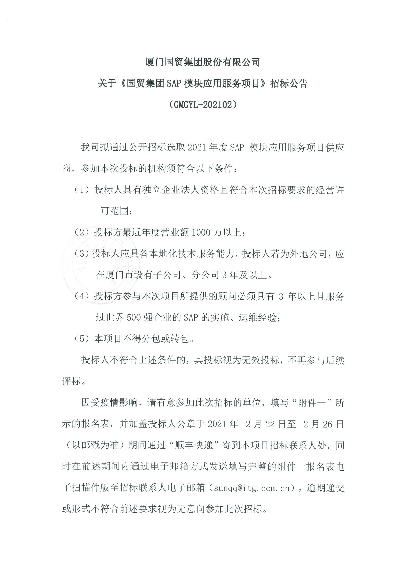 關(guān)于《國(guó)貿(mào)集團(tuán)SAP模塊應(yīng)用服務(wù)項(xiàng)目》招標(biāo)公告