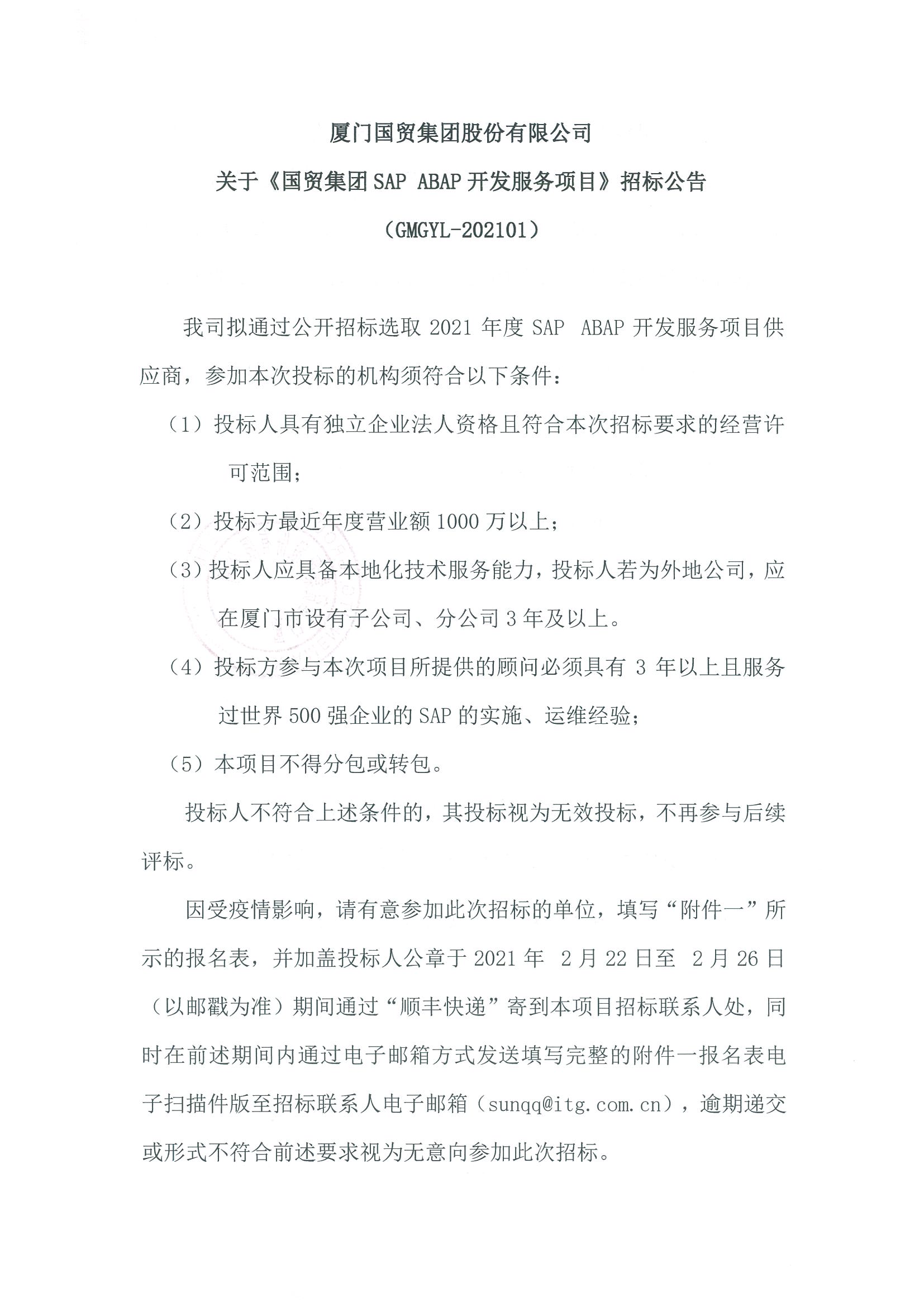 關(guān)于《國貿(mào)集團(tuán)SAP ABAP開發(fā)服務(wù)項(xiàng)目》招標(biāo)公告