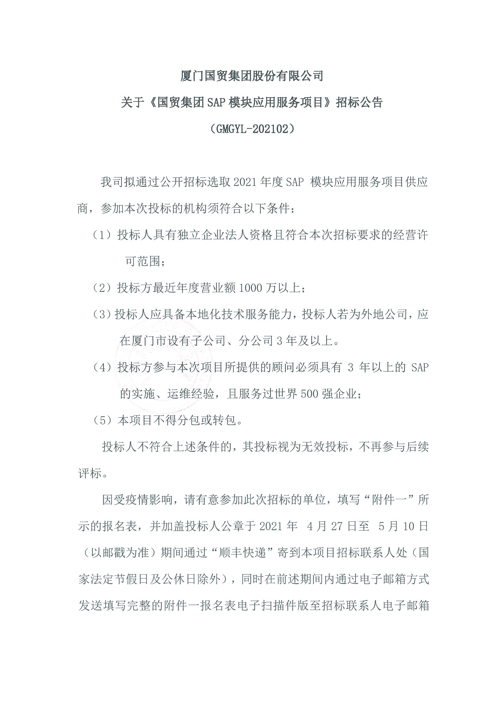 關(guān)于《國貿(mào)集團(tuán)SAP模塊應(yīng)用服務(wù)項目》招標(biāo)公告