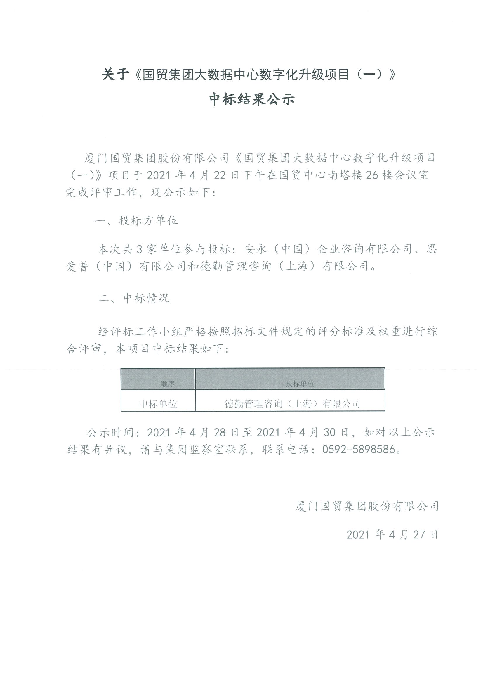 關于《國貿集團大數據中心數字化升級項目(一)》采購中標結果公示