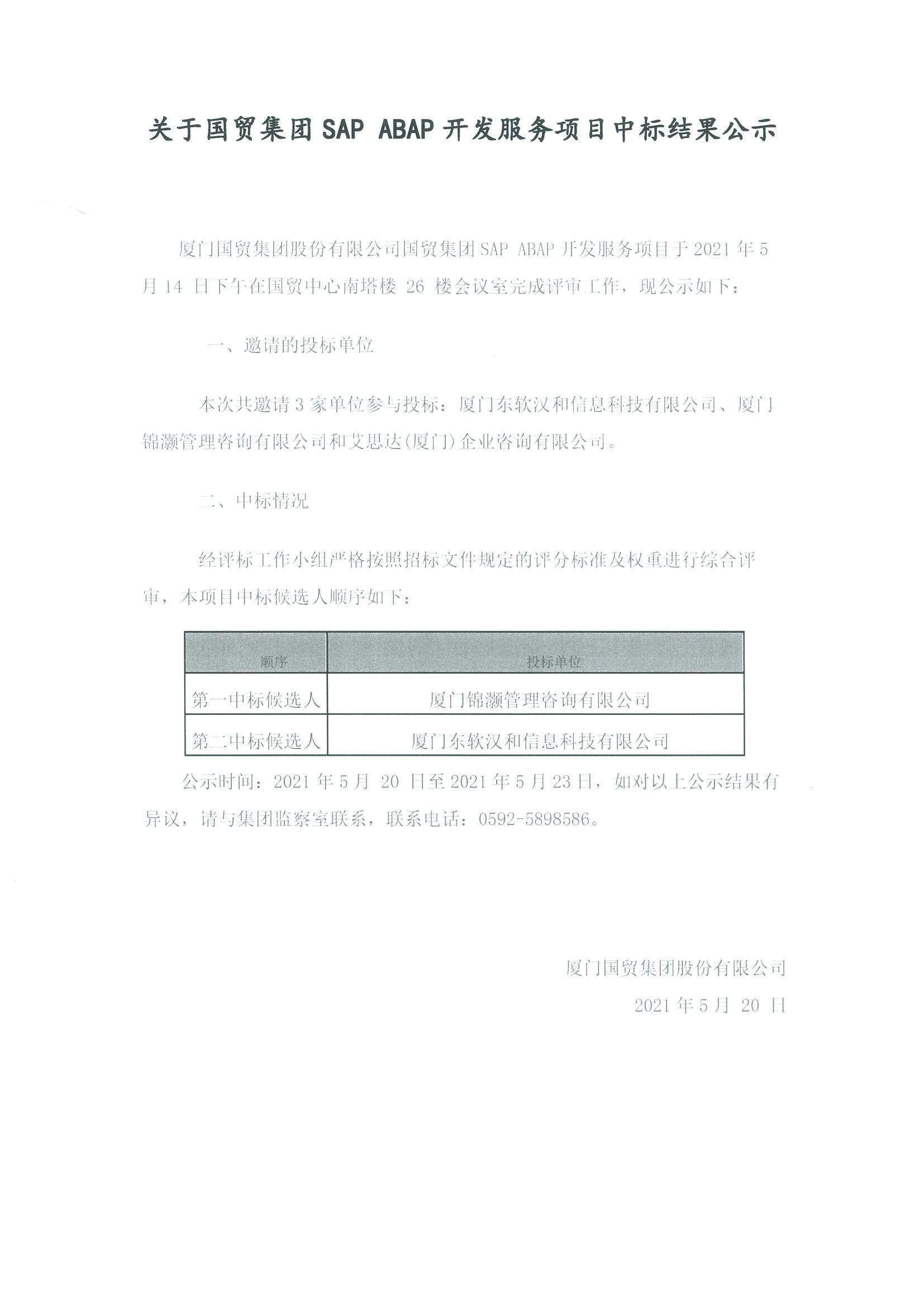 關(guān)于國貿(mào)集團(tuán)SAP ABAP開發(fā)服務(wù)項(xiàng)目中標(biāo)結(jié)果公示