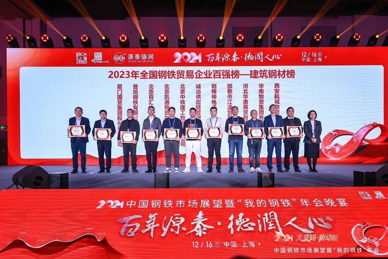 雙項第一!國貿(mào)股份連續(xù)三年登頂“中國鋼貿(mào)企業(yè)百強榜”建筑鋼材榜、金屬板材榜。