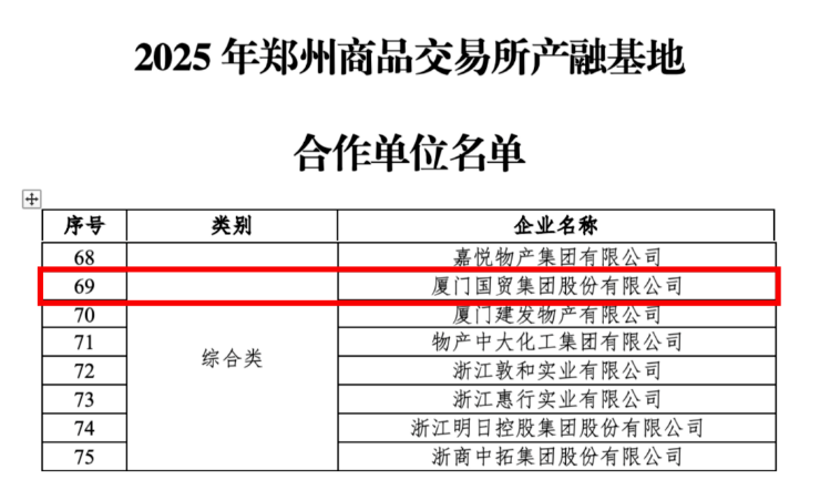國貿(mào)股份入選鄭商所2025年服務(wù)實體經(jīng)濟產(chǎn)融基地。