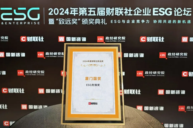 廈門(mén)國(guó)貿(mào)榮獲2024年度財(cái)聯(lián)社致遠(yuǎn)獎(jiǎng)·ESG先鋒獎(jiǎng)
