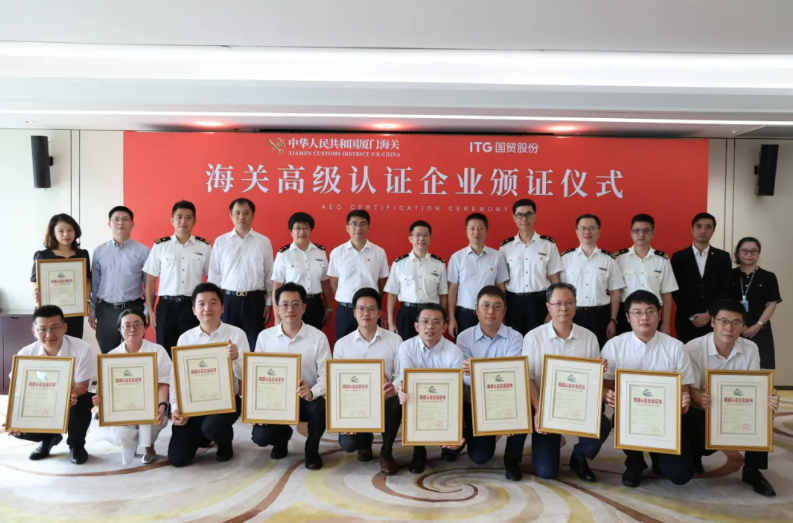 廈門海關(guān)為國(guó)貿(mào)股份進(jìn)行集體頒證,標(biāo)志著國(guó)貿(mào)股份旗下11家子公司順利通過海關(guān)高級(jí)認(rèn)證,成為AEO企業(yè)。